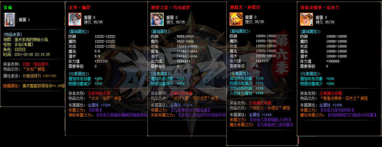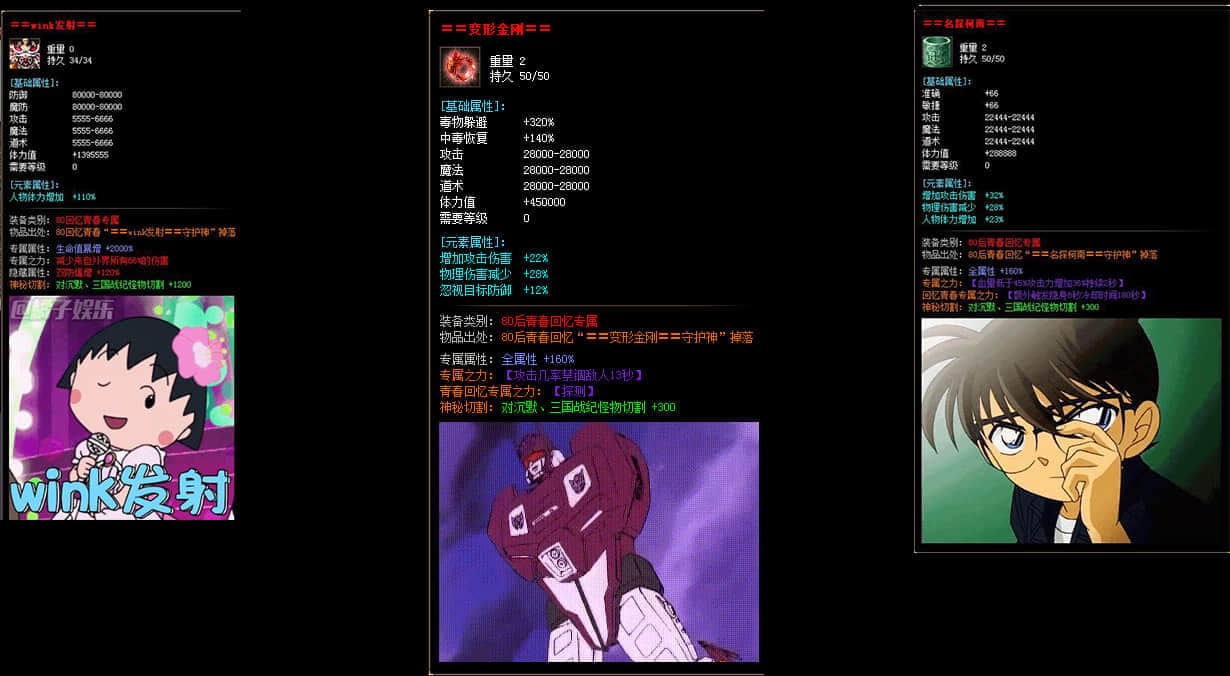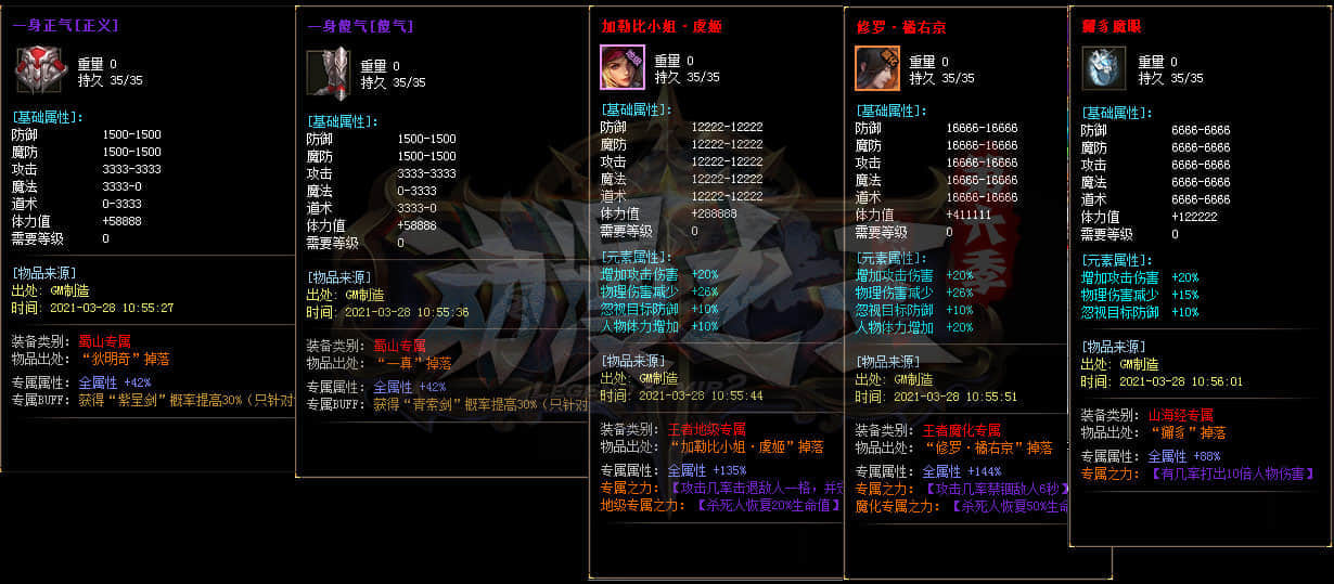 本服套装70套 散件专属3000多套 各种神装眼花缭乱 长期探索